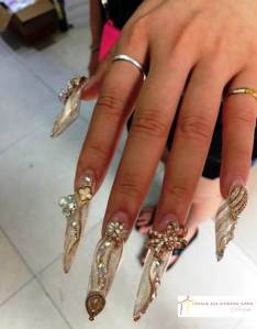 Os ‘nails studios’ que hoje estão na moda no Brasil, já existiam na China há muito tempo. E a história das unhas enfeitadas então… desde que a China é China! Sim, porque vamos combinar que aqui não é uma florzinha delicada na unha, ou um esmalte mais elaborado com listras ou qualquer coisa…